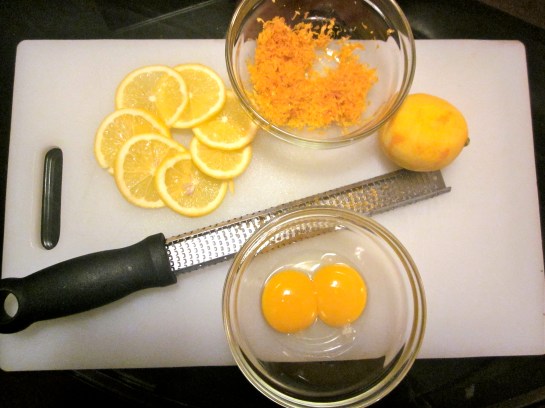 I wandered around the market the other day looking for ingredients to satisfy my craving for French, um, food, and found Meyer lemons. I had never cooked with these before, but of course had heard of them, as every yuppie cooking store and bakery has something with Meyer lemon curd. Being a foodie nerd, I frequent these places, but am always too scared to try baking anything I see. No longer. It’s no surprise these little guys are so popular, because holy cow are they delicious. A cross between a mandarin orange and a lemon, they are slightly sweeter than a regular lemon and have a beautiful, free-range egg-yolk colored rind.