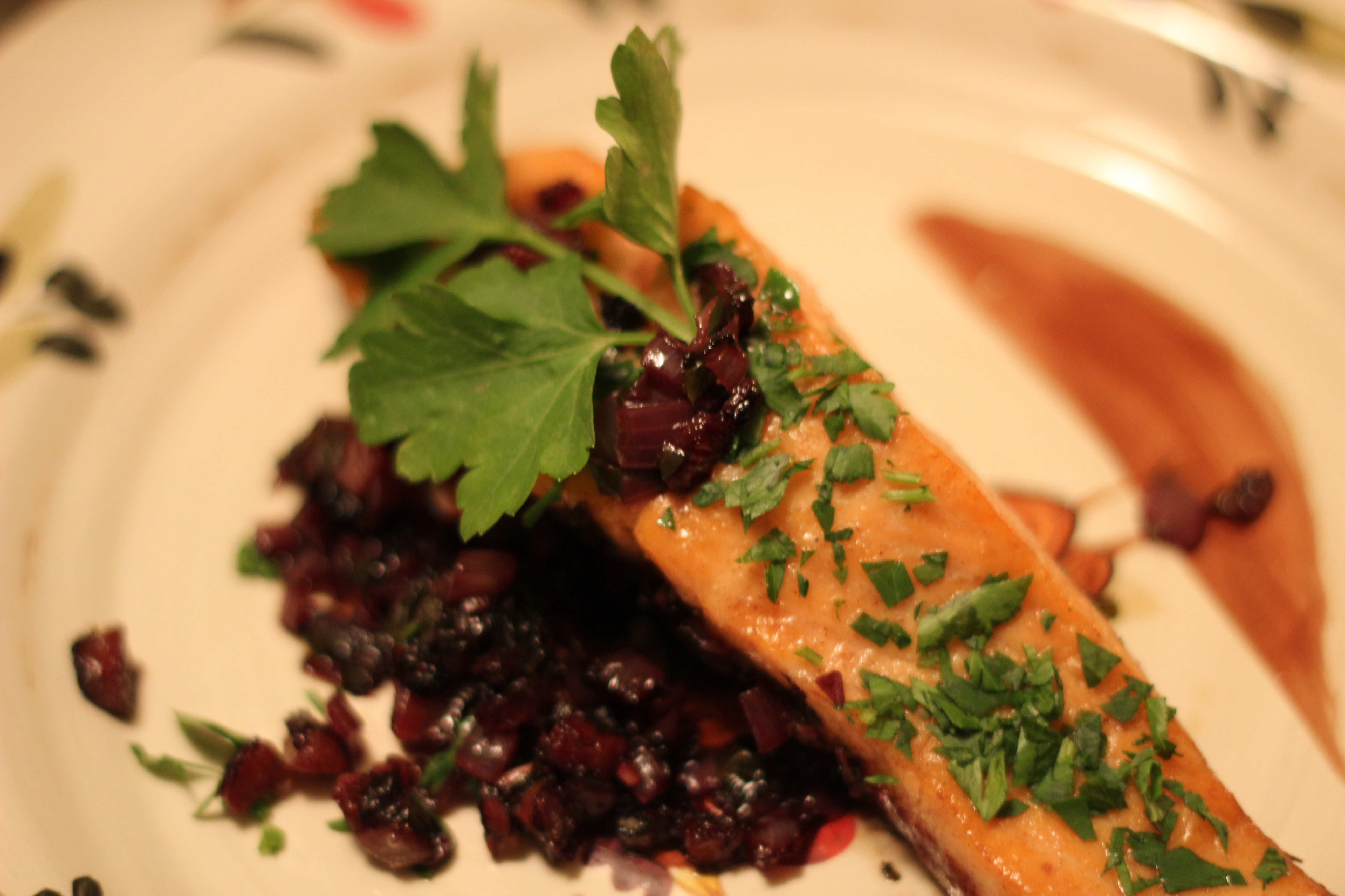 Sadly, I didn’t get a picture of the whole table, or the appetizer, or the wine, or….the people enjoying the food! Rest assured, however, that those things did exist and were lovely. I would have loved some champagne to have made it into the mix, but alas, we cannot have every single little thing our heart desires. I would also love to just have one of those little hourglasses from Harry Potter so I could cook the meal and then go back in time and photograph myself cooking the meal. Le sigh. Life goes on. 🙂