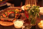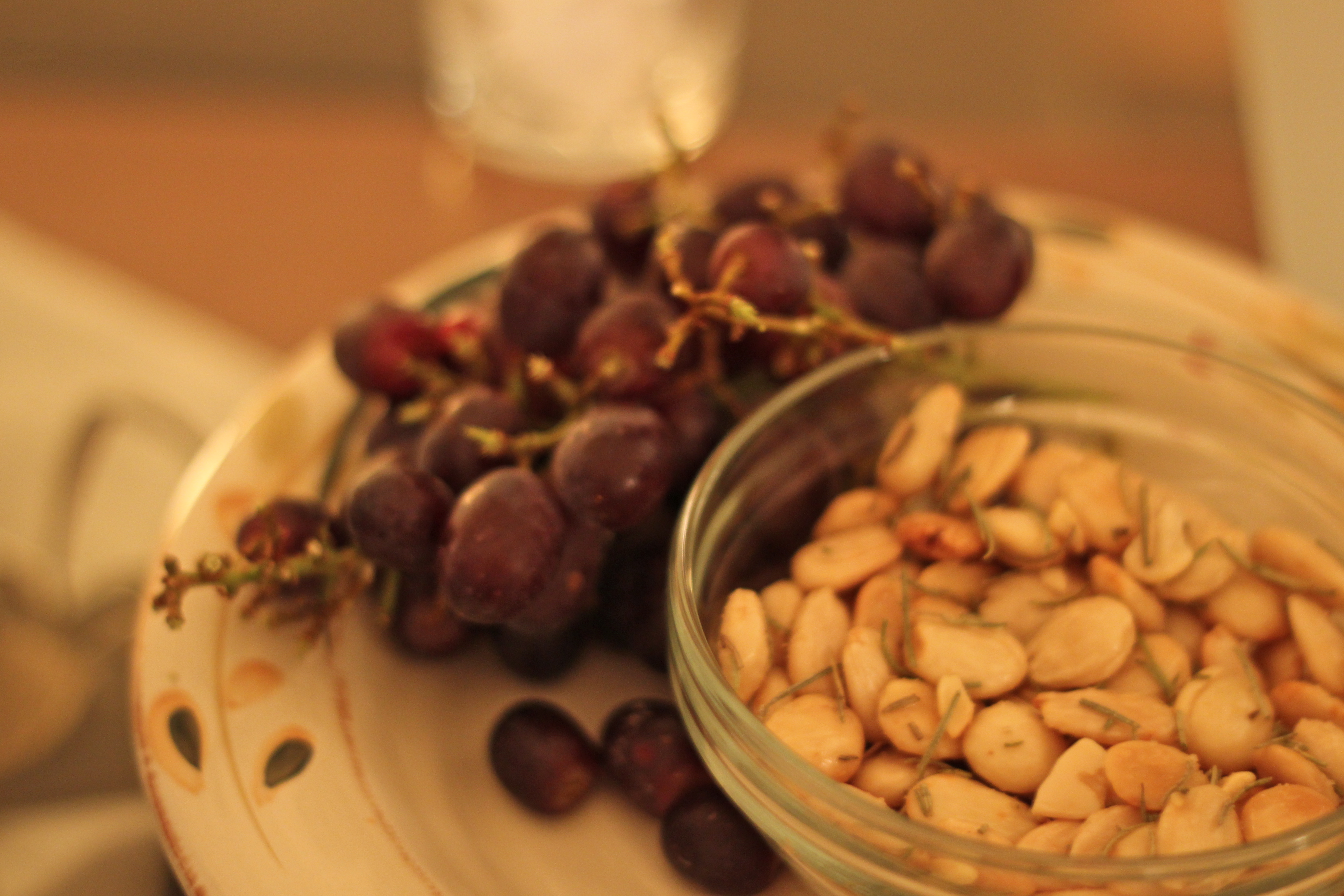 Again, no pictures of the guests. I’m embarrassed to snap photos during dinner! It’s like, “Put your fork down, I’m going to put this on my blog.” I suppose I’ll get the hang of it eventually. Here is the menu for my “In Like a Lion” vegetarian feast, in honor of Jesse and Alice, spring, and a craving for champagne cocktails…