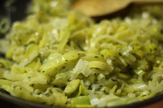 The vegetables these days have been strikingly vibrant at the markets, maybe due to the weather, maybe just due to the skill of the Amish farmers who dot the landscape around Philadelphia. It’s hard to resist picking up one of everything! While shopping for a pasta dish that includes swiss chard and potatoes, I grabbed two big bunches of leeks, thinking I would throw them in too–then forgot I had bought them. (This, as it happens, is VERY typical.) I thought at first I’d use them in a soup but it’s just so gosh-darn SPRINGY outside…so a few minutes of searching for “interesting ways to feature leeks” on google rendered a version of the recipe below.