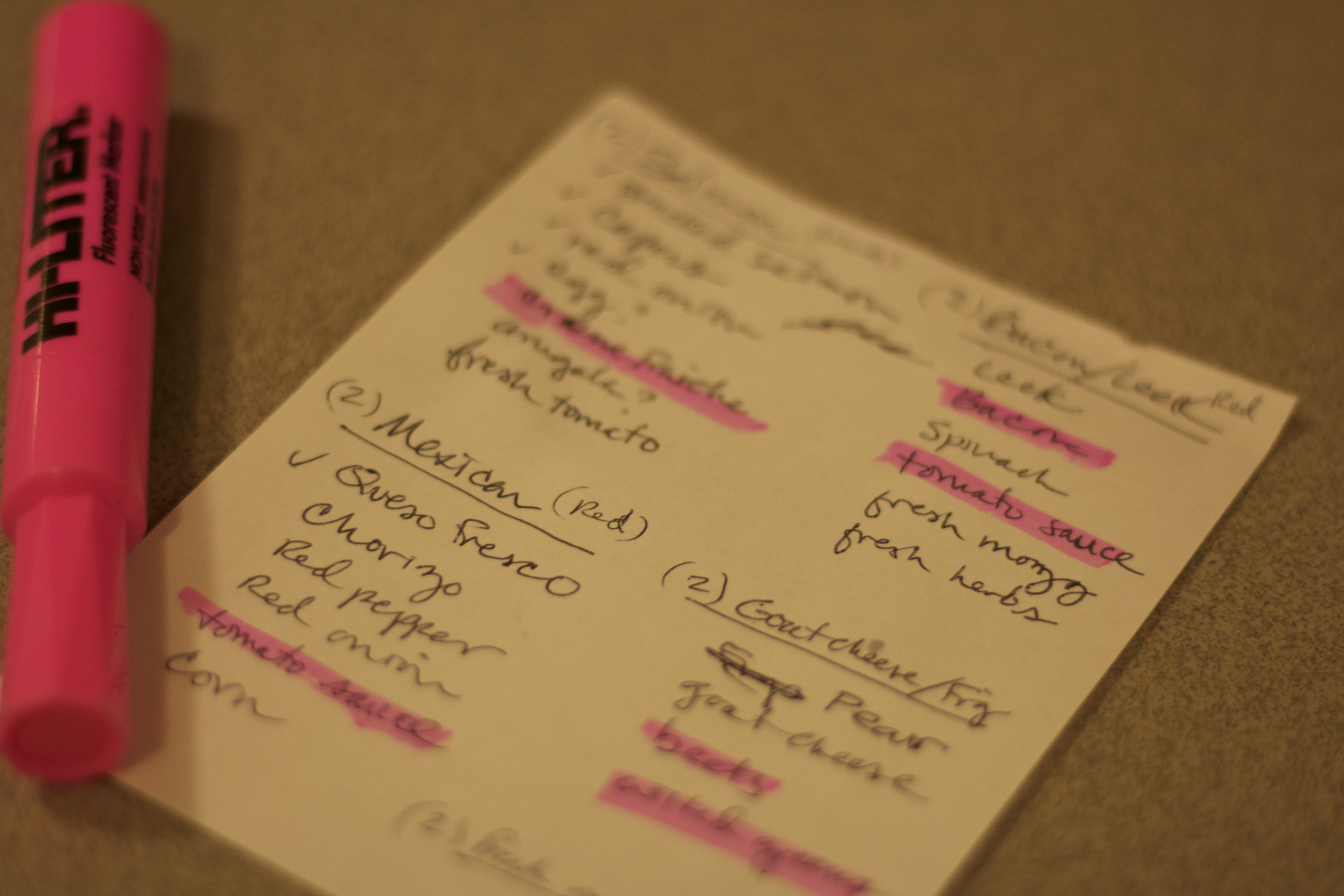 Perhaps seeing this, you will wonder what kind of pizzas we made? Here is the full list (I think). You’ll notice the pizzas get increasingly elaborate toward the end when we just piled as many toppings as would fit onto the remaining crusts. Stay tuned for an upcoming post about making your own pizza crust!