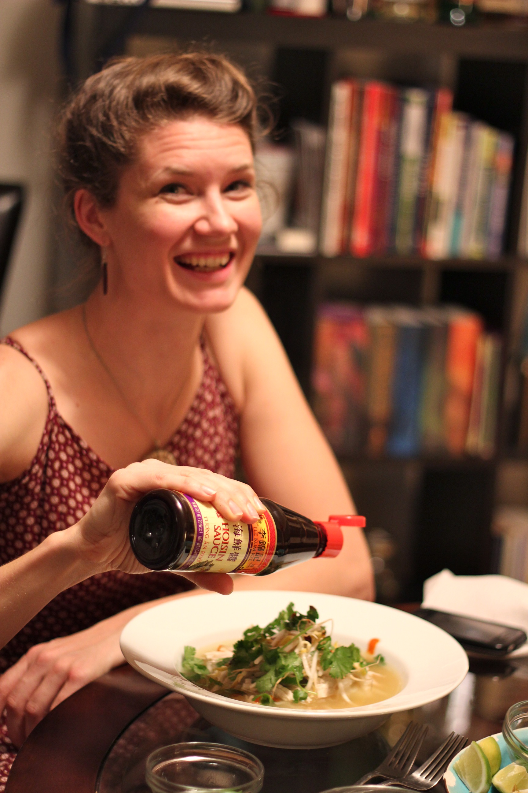 I love “pho bo,” which has beef, and Ryan loves “pho ga,” which has chicken. Of course, this week I’m still not eating meat and so I topped my bowl with baked & sliced tofu. It is totally up to you. Traditionally the broth is made from the bones of the animal of your choice, which gives it an unparalleled richness, but I found this recipe and was inspired to try a vegetarian version. If you’re not already making your own stock, it may make all the difference here. One last tip: careful when adding hot sauce to your bowl. That stuff dissolves into the broth, making your last spoonful from the bottom of the bowl a dangerous endeavor. Proceed with caution, and Happy Slurping!