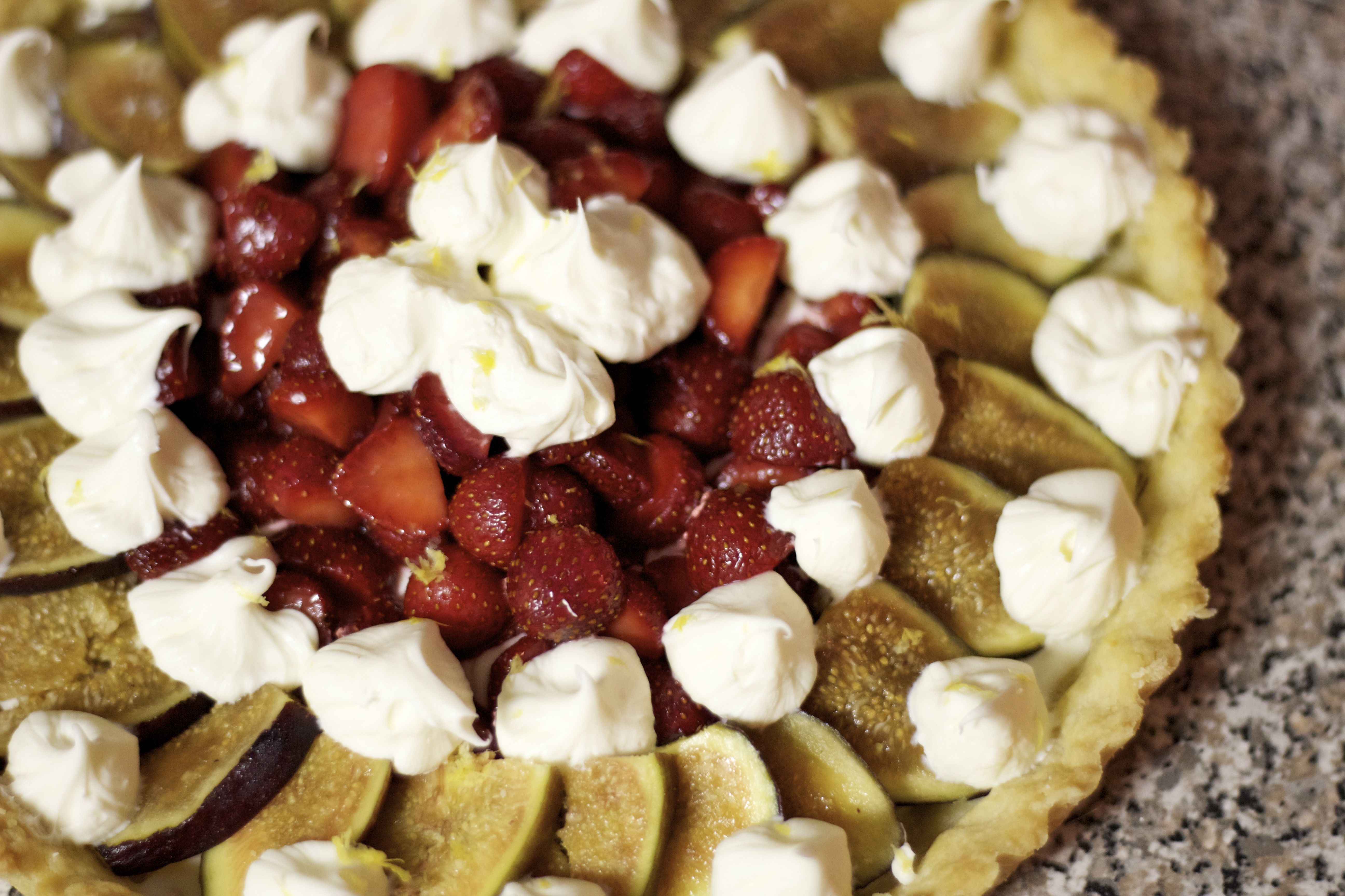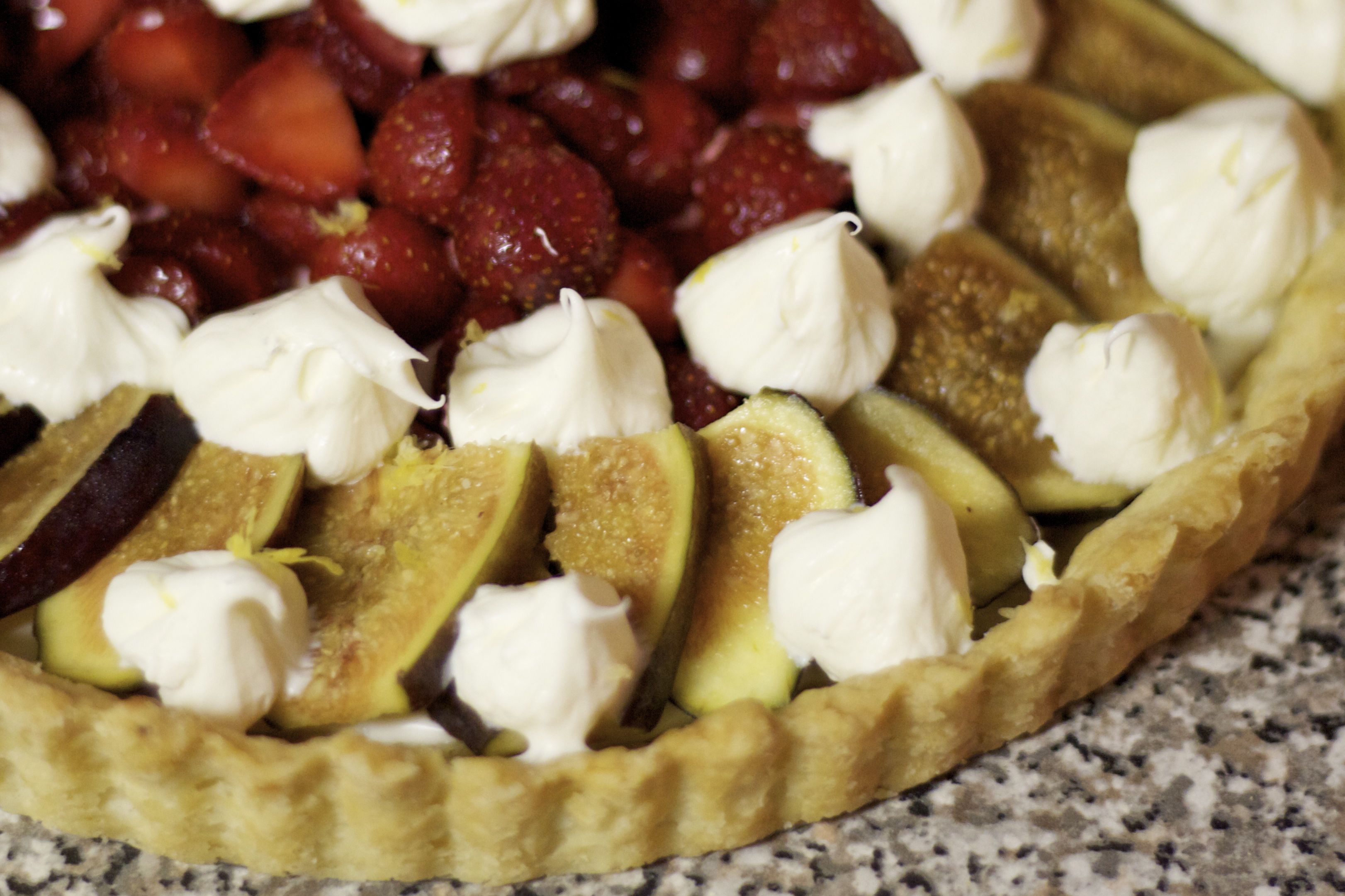 Oh, this tart. I have eaten this for breakfast every morning and dessert every evening since making it on Monday. Basically I’m almost wholly subsisting on it. This recipe is almost not even a recipe. It goes something like this: make a crust, mix some mascarpone with honey, spread it on the crust, top with fruit. Pretty simple. Almost not even warranting a post. So I’ll keep this one short.