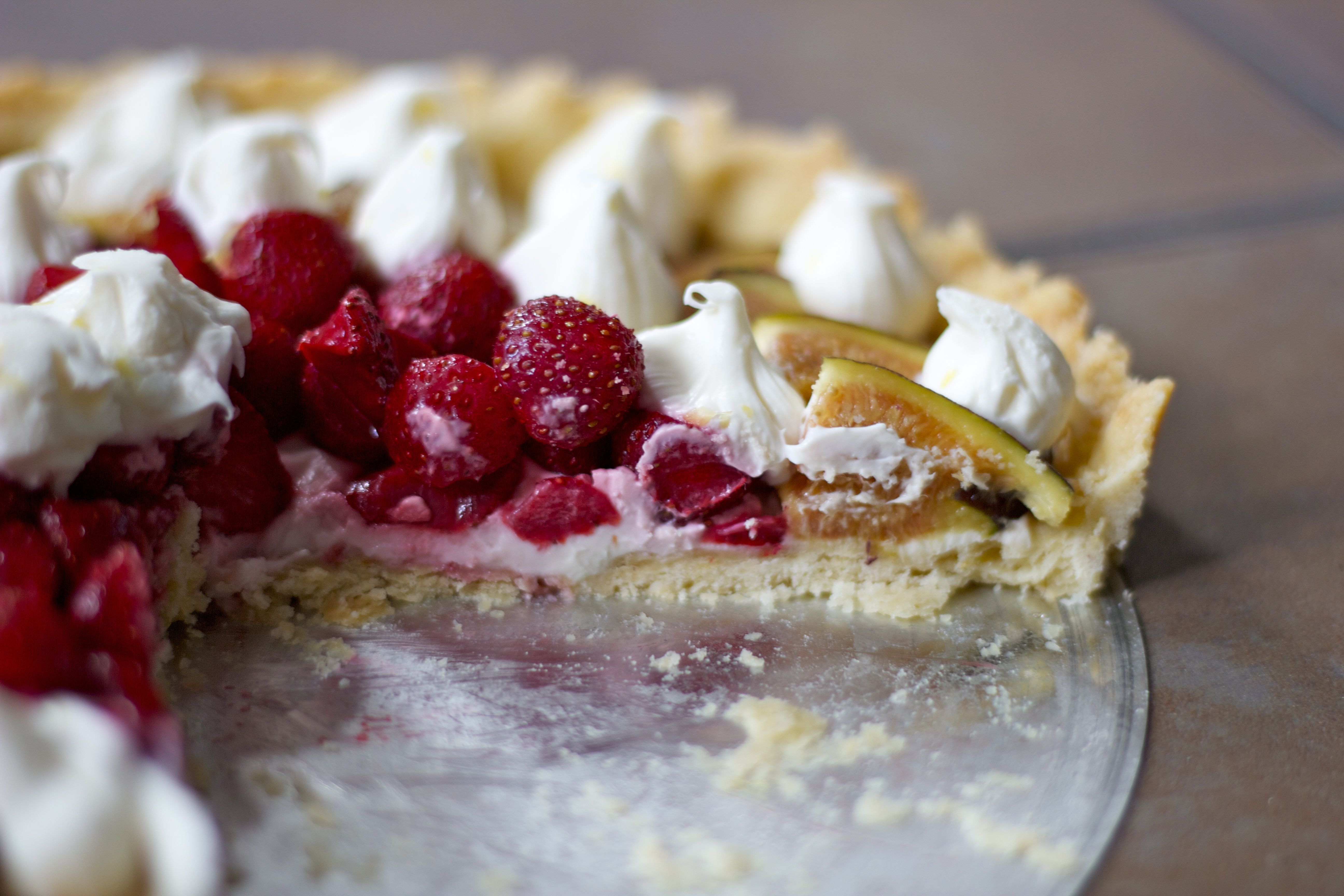 Anyway, didn’t I say I was going to keep this short? I planned to use up the last of my farmer’s market strawberries (the rest went into homemade strawberry lemonade and various and sundry cocktails) but there weren’t quite enough for the whole tart so I decided to use the figs too. I think the whole effect is rather lovely, don’t you?