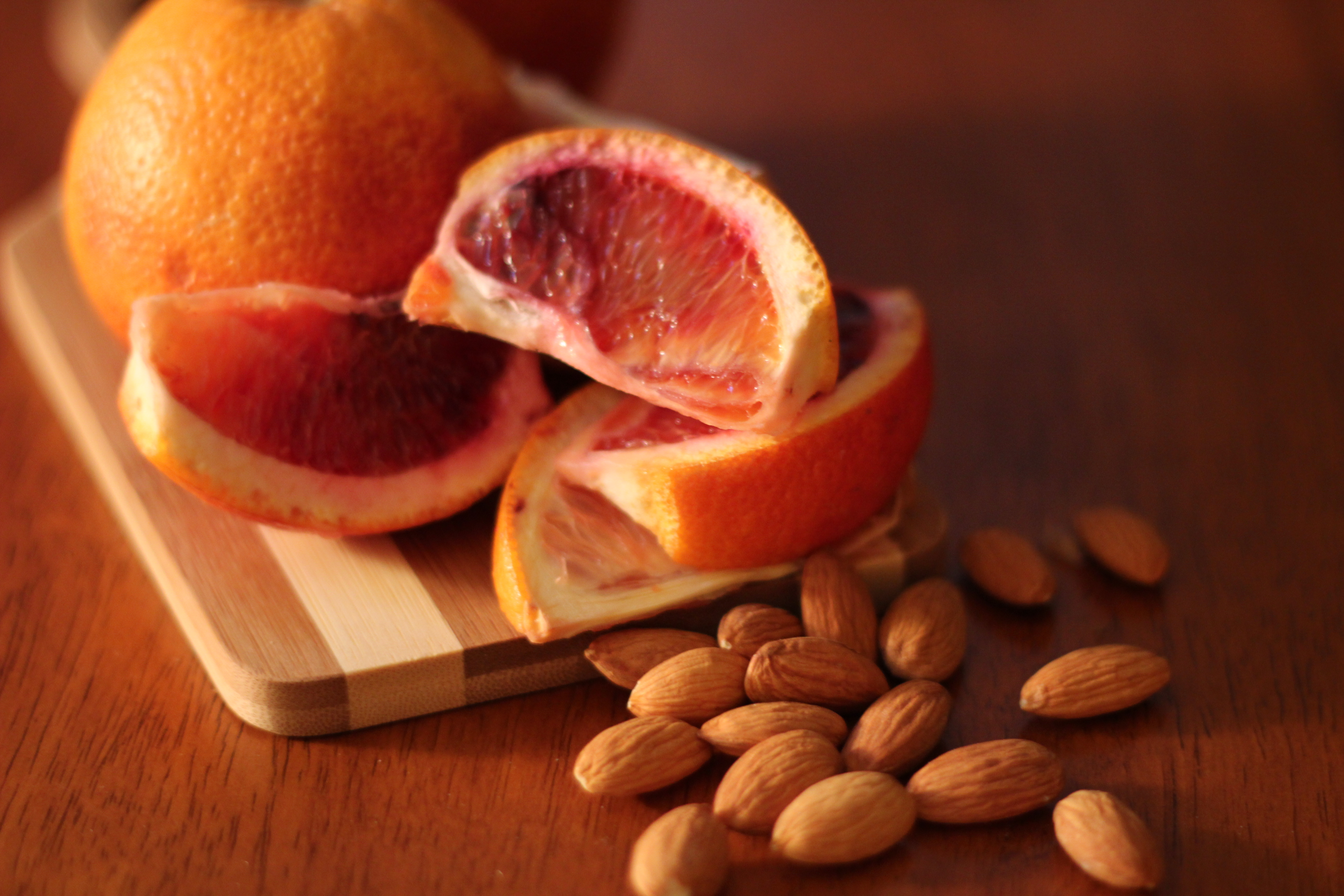 After my dinner party the other night, I had a few blood oranges and almonds left over from my dessert platter and wanted to put them in a cake. I haven’t baked a cake in ages, mostly because I would have to eat the entire thing myself, and, while that does sound exciting, I actually know I’d just get sick of it after about two slices and end up throwing it away. But I changed my tune when I thought of a citrus kissed, nutty, gluten-free cake that I could eat for breakfast or dessert–and also I guess I just decided I didn’t mind the idea of eating an entire cake alone. I also had a potluck to attend, at which I knew a few guests would need some gluten-free treats. Perfect excuse.